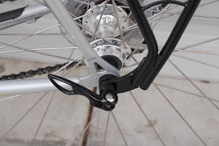 The Disco is an innovative design. If you don’t have eyelets for the rear rack, you can use their special extra long quick release skewer. The rack then rests on the quick release skewer.