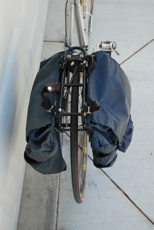 The rack is pushed back far enough that my heels don’t hit the panniers.
